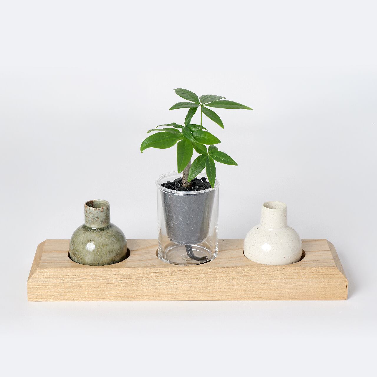 やまがた炭を贅沢に使用した炭の樹とかもしか花卉店の花瓶の選べるセットです。