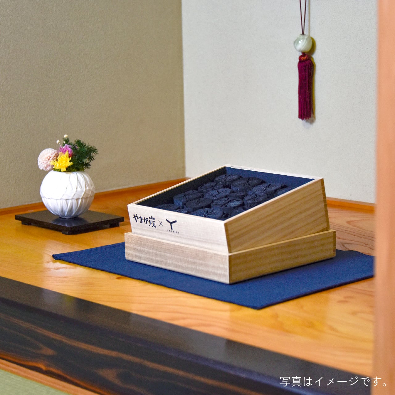山形県山形市の伝統工芸、桐箱づくりの技を受け継ぐ「有限会社よしだ」とのコラボレーションによる、インテリアアイテム「玉手箱(大)」。桐箱の中に菊炭を丁寧に収め、和室の空間にぴったりなアクセントとしてお楽しみいただけます。炭が持つ調湿・消臭・浄化の力で、暮らしに清らかな空気と落ち着きをもたらします。職人の手作業による一つ一つ異なる仕上がりは、唯一無二の存在感。大切な方への贈り物にも最適です。