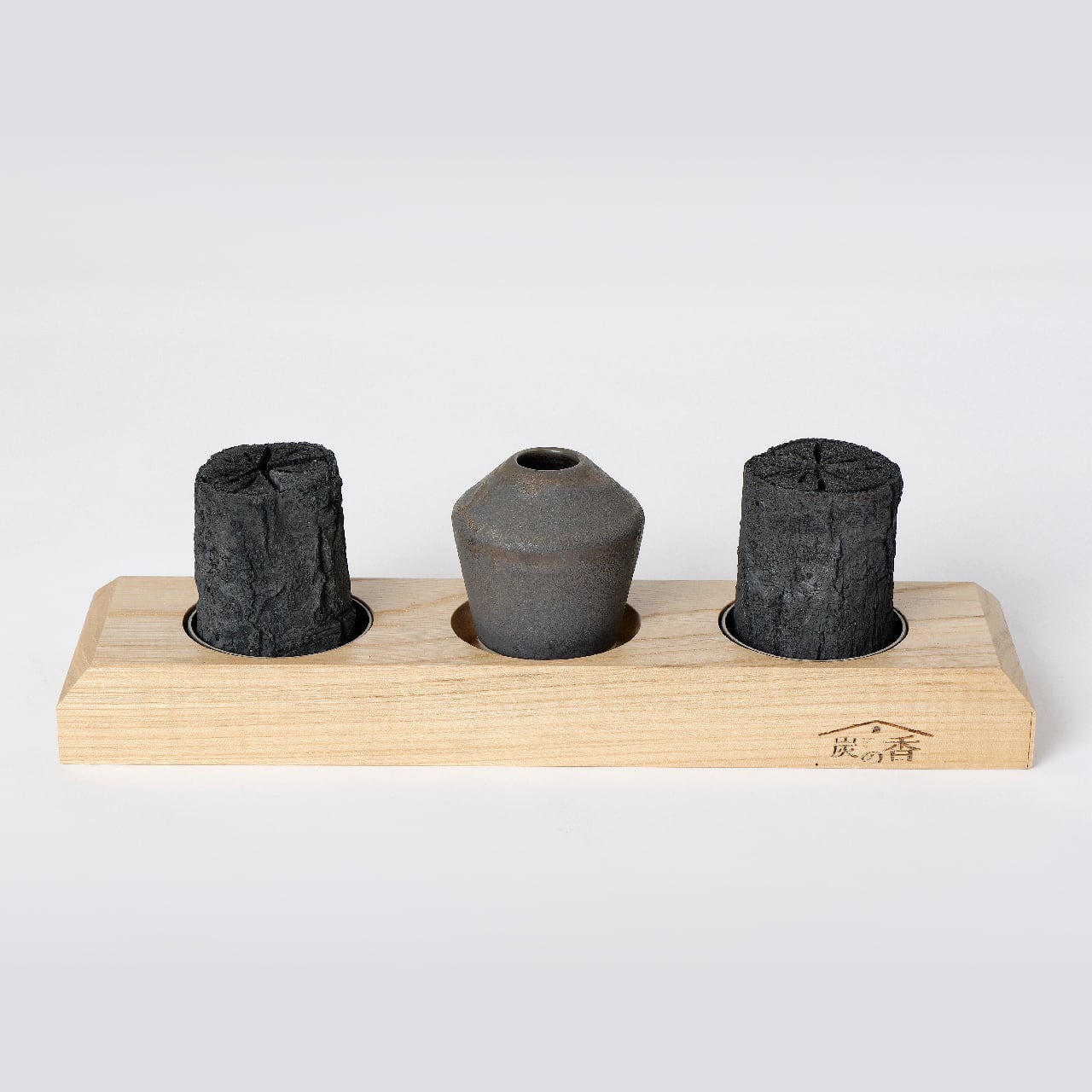 「選べる炭の香‐花瓶セット」ブランド炭(やまが炭)と、かもしか花卉店の花瓶がセットとなった商品です。炭の力が空気を整え、花瓶に季節の草花を添えれば、暮らしに静かな潤いと彩りをプラス。玄関やリビング、寝室、など日常の空間に心地よく溶け込みます。